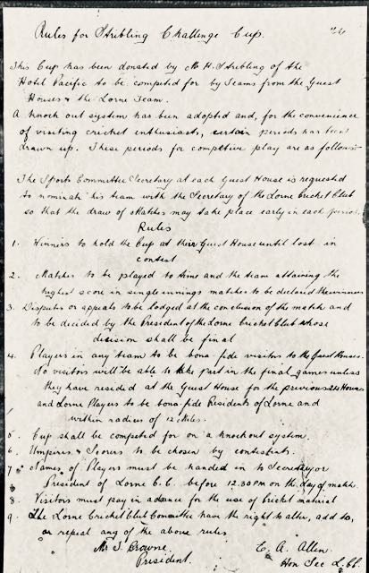 This cup was donated Hector Stribling of the Hotel Pacific to be competed for by teams from the guesthouses and Lorne team. A knock-out system was adopted. The cup was later donated to the Lorne School by Stewart Stribling to become the House Athletics trophy.