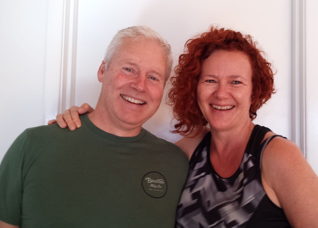 Richard and Janet have enjoyed travel, especially cruising in latter years but come winter, it’s off to Noosa for a month……… and by the way her black eyes in the photo are from a recent fall, not from Richard !