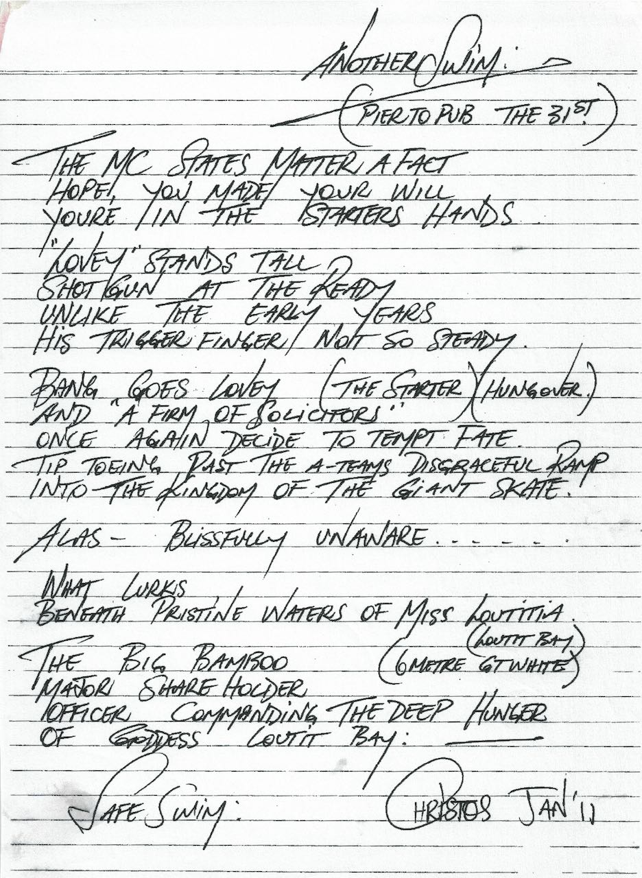 Another Swim, Pier to Pub poem by Christos, 2011
