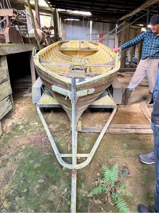 In late 2021, the Lorne Historical Society arranged a mill site visit with its current owner, Adrian Elliott, to learn more about the 19th- and 20th-century Otway timber industry. Always a sucker for boats, I couldn’t help but notice a dusty maritime relic tucked away on a lower level of the mill. I remember thinking “… that’s interesting … I wonder what it is?” … then promptly forgot about it.